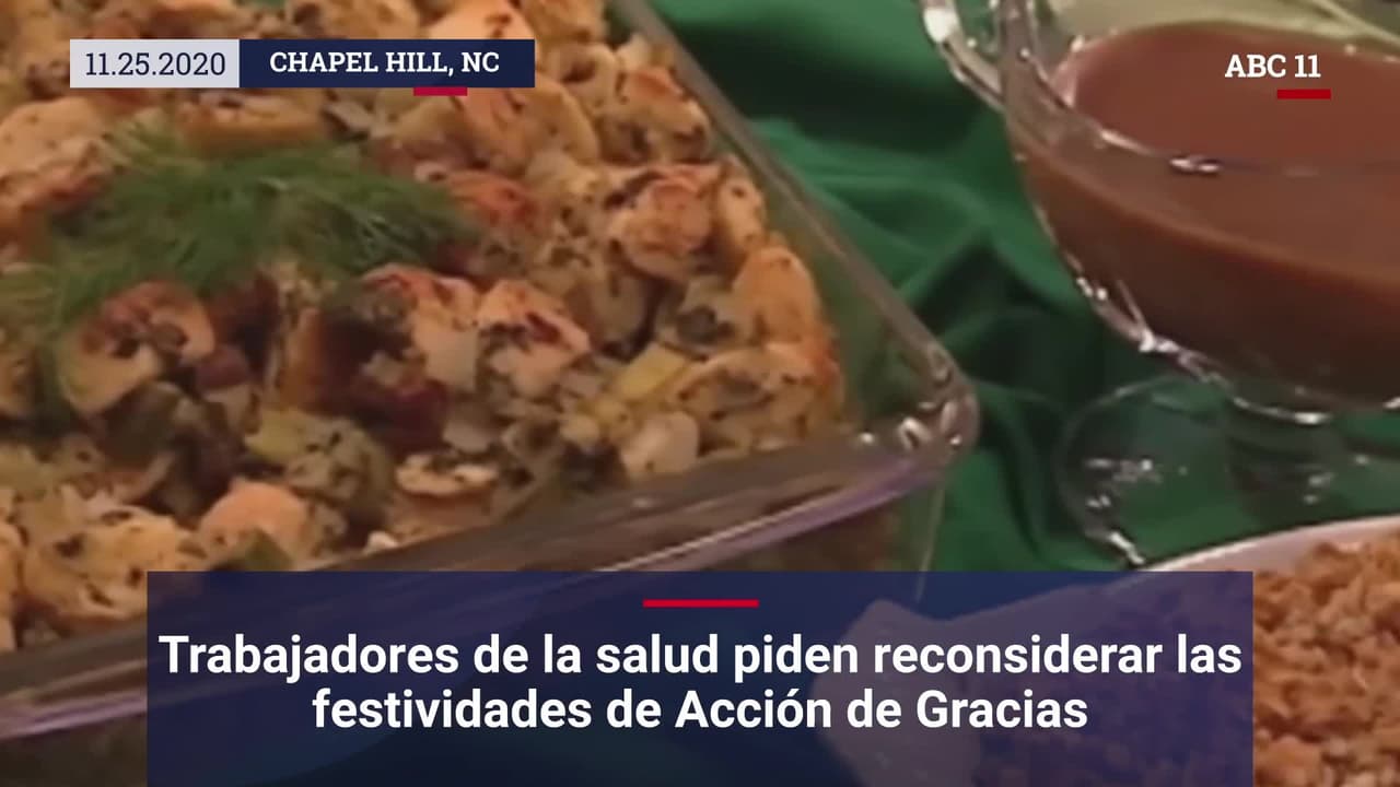 CHAPEL HILL, Carolina del Norte.- Médicos y enfermeras del Hospital de la Universidad de Carolina del Norte (UNC Health) hacen un llamado a la comunidad en el feriado del Día de Acción de Gracias.