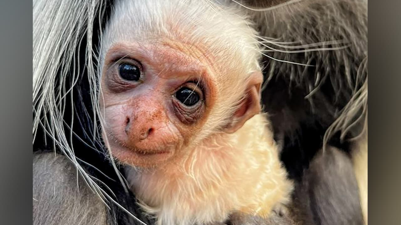 En la foto se ve al mono bebé con su pelaje blanco, aunque con el paso del tiempo una parte se tornará negro, propio de los colobus, indicaron las autoridades del zoológico.
