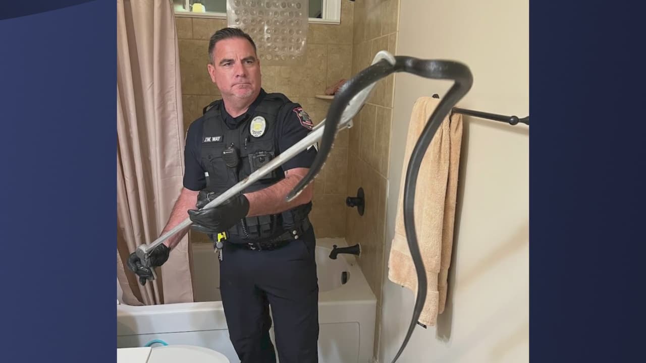 Un oficial respondió a una llamada de intrusión inusual, según una publicación de Facebook del Departamento de Policía de Graham. El sospechoso era una serpiente que se había deslizado hasta el baño.