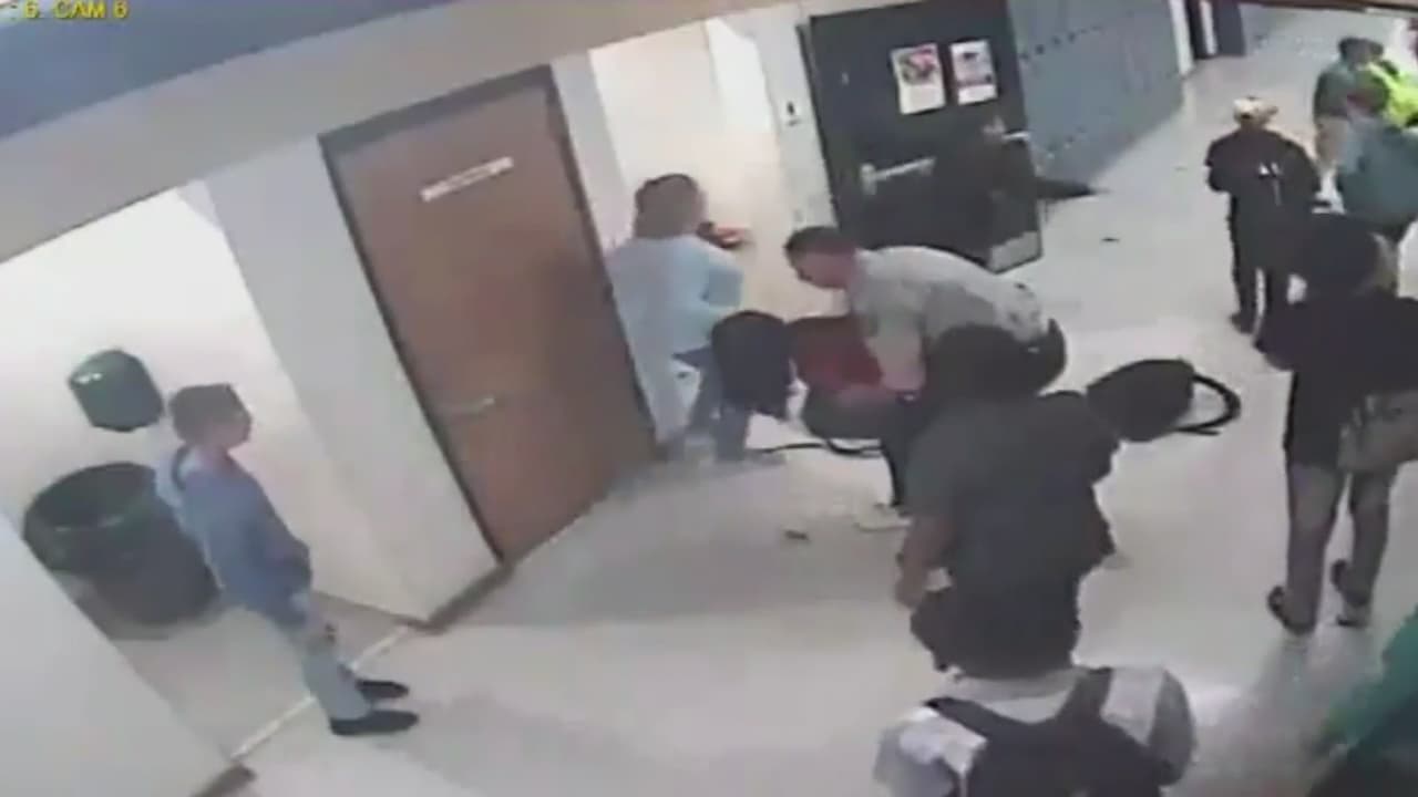 Quedó grabado en cámara el momento en que un oficial de recursos escolares practicó primeros auxilios en el pasillo de la Escuela Secundaria North Iredell, en Carolina del Norte.