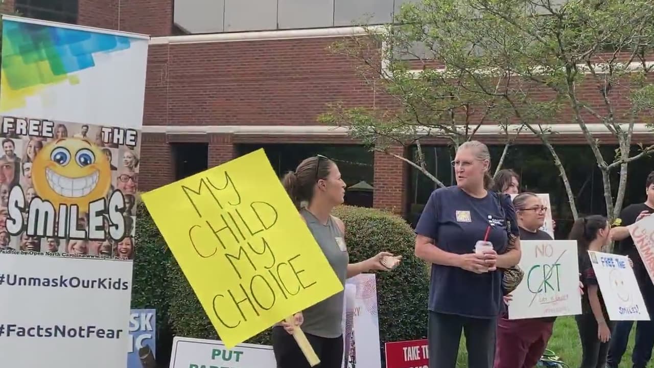 Año escolar 2021-22: padres protestan contra el uso obligatorio de mascarillas en escuelas de Wake
