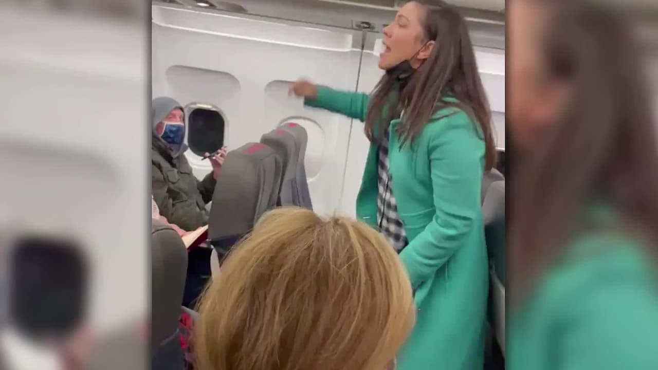"Si no nos oponemos esto se pondrá peor", gritaba la mujer a los demás pasajeros. La disputa en pleno vuelo de American Airlines quedó grabada en cámara.