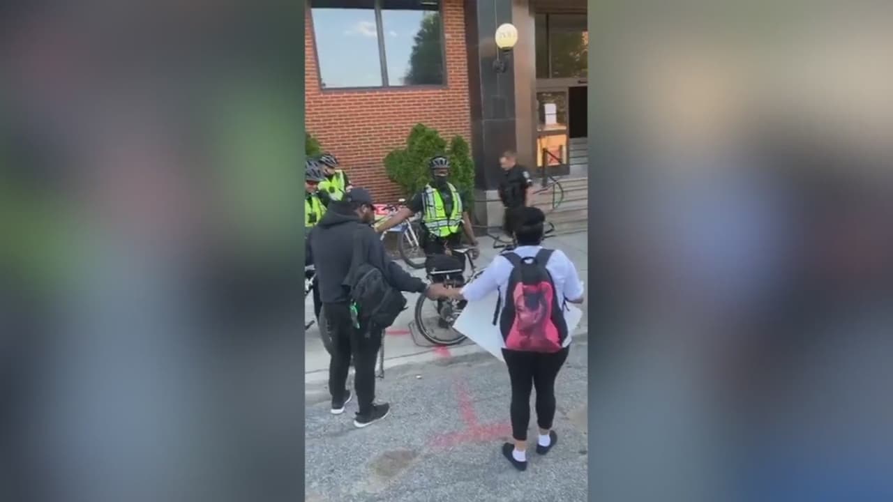 La poderosa imagen llega desde Greensboro, en Carolina del Norte, donde se ve a un grupo de manifestantes unirse en oración con varios uniformados. El momento terminó con abrazos y lágrimas.