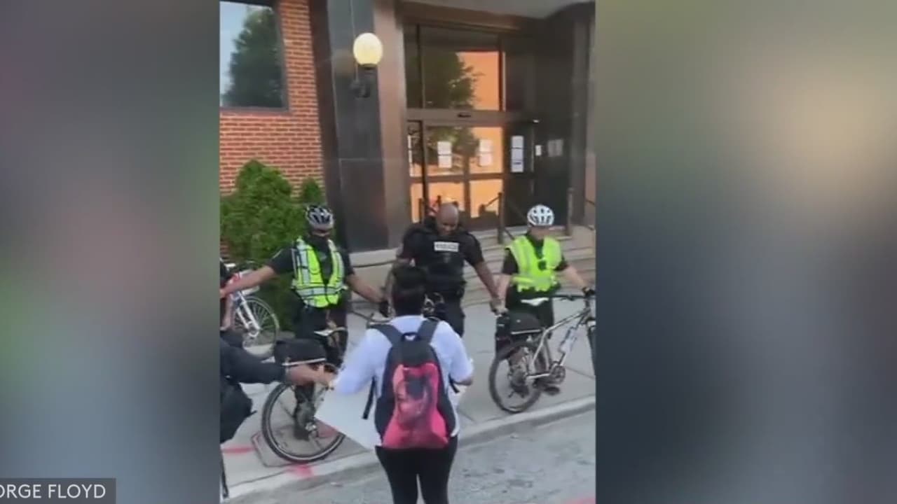 La poderosa imagen llega desde Greensboro, en Carolina del Norte, donde se ve a un grupo de manifestantes unirse en oración con varios uniformados. El momento terminó con abrazos y lágrimas.