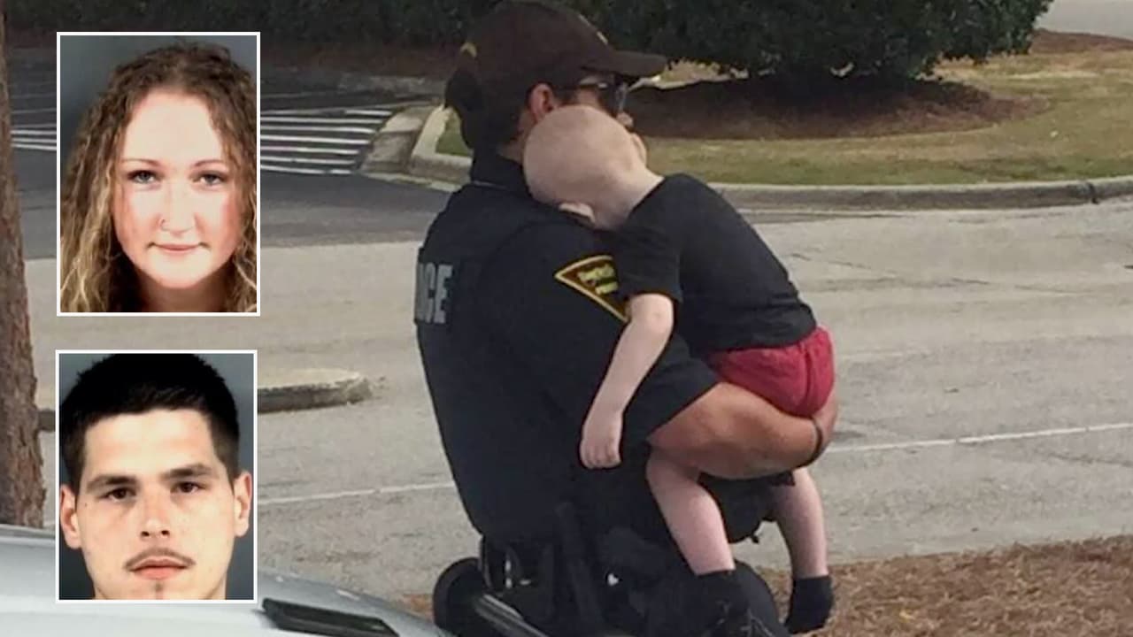 La conmovedora imagen muestra al oficial Sheeley del Departamento de Policía de Fayetteville consolando al pequeño mientras llegaba un familiar. Ambos padres, de 26 y 28 años, fueron arrestados.