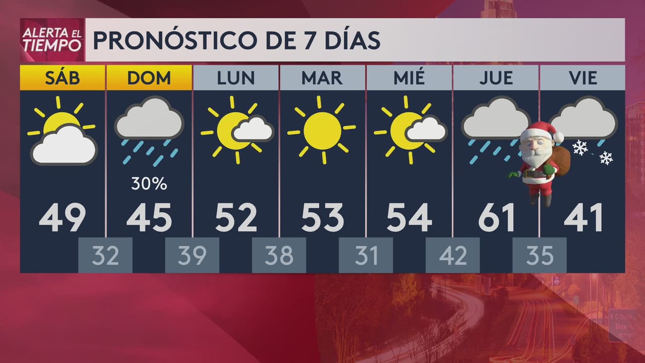 Se espera un sábado parcialmente soleado con mínimas en los 22 °F. Las lluvias regresarían la madrugada del domingo.