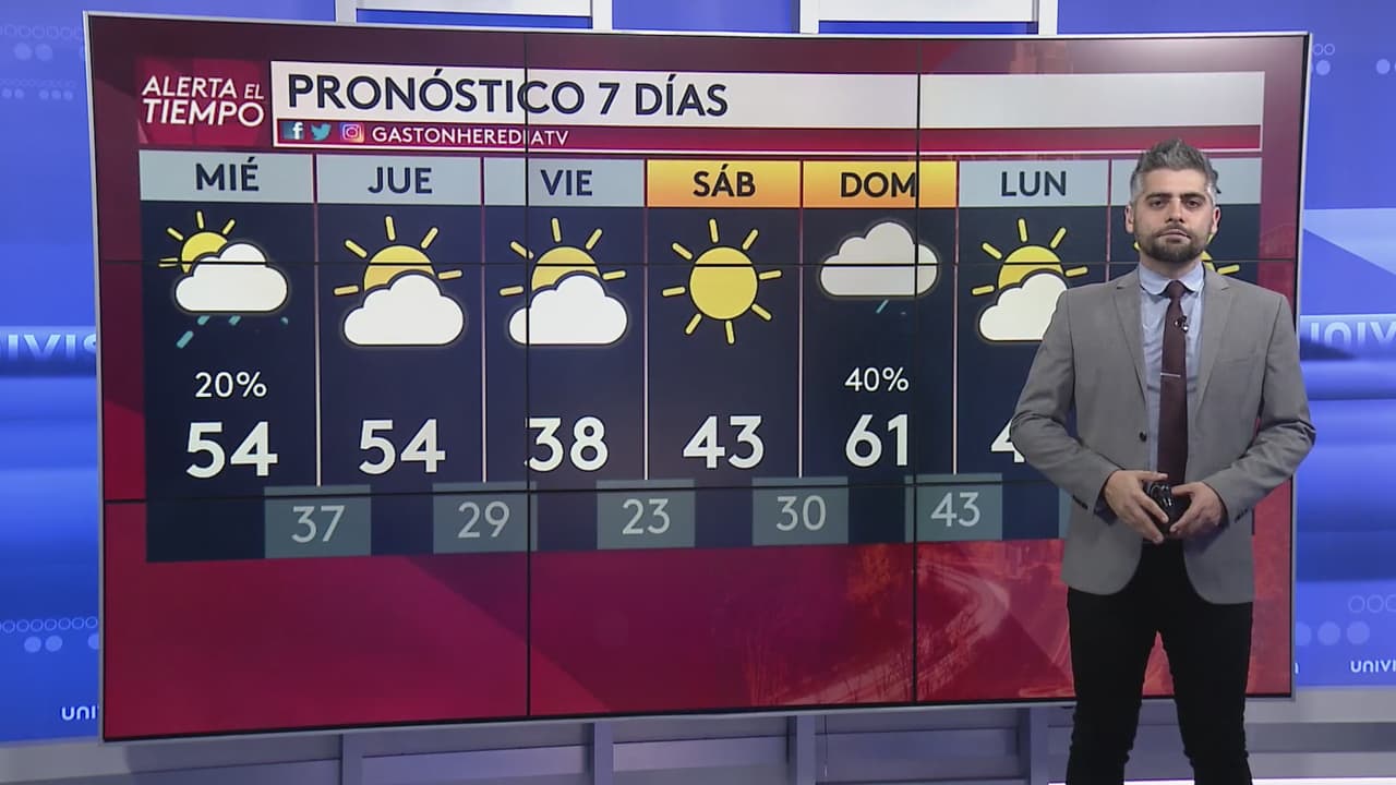 Tome precauciones, ya que esta lluvia helada puede dejar una capa de hielo en los caminos. A lo largo del día predominarán las condiciones nubladas con temperaturas en el rango de los mediados 50 grados.