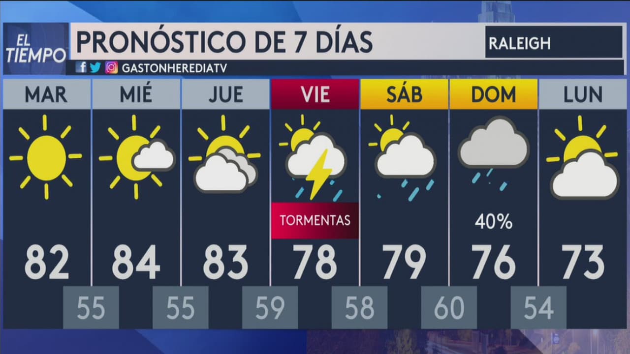 Se espera un pronóstico estable con condiciones placenteras y temperaturas en los 80 °F. El calor se extenderá hasta el viernes, cuando se aproxima un gradual descenso de las temperaturas.