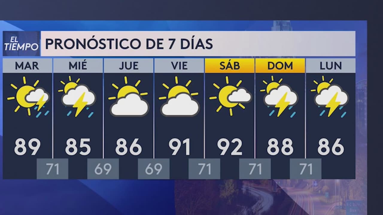 Se mantiene la posibilidad de lluvias dispersas en Raleigh, y localidades al sur del estado. Las temperaturas estarán entre los 71 y los 89 grados.