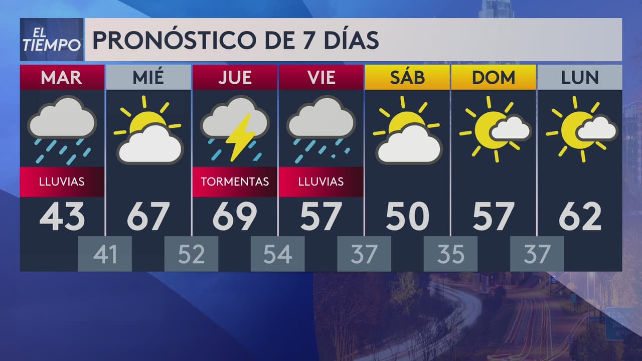Áreas al sur y oeste de Carolina del Norte podrían registrar tormentas severas a partir del miércoles, aumentando su intensidad el jueves.