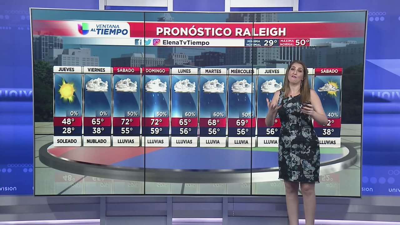 Las temperaturas descenderán en Carolina del Norte debido al paso de un frente frío, con máximas de 48 grados. También se espera un cielo soleado para este jueves.
