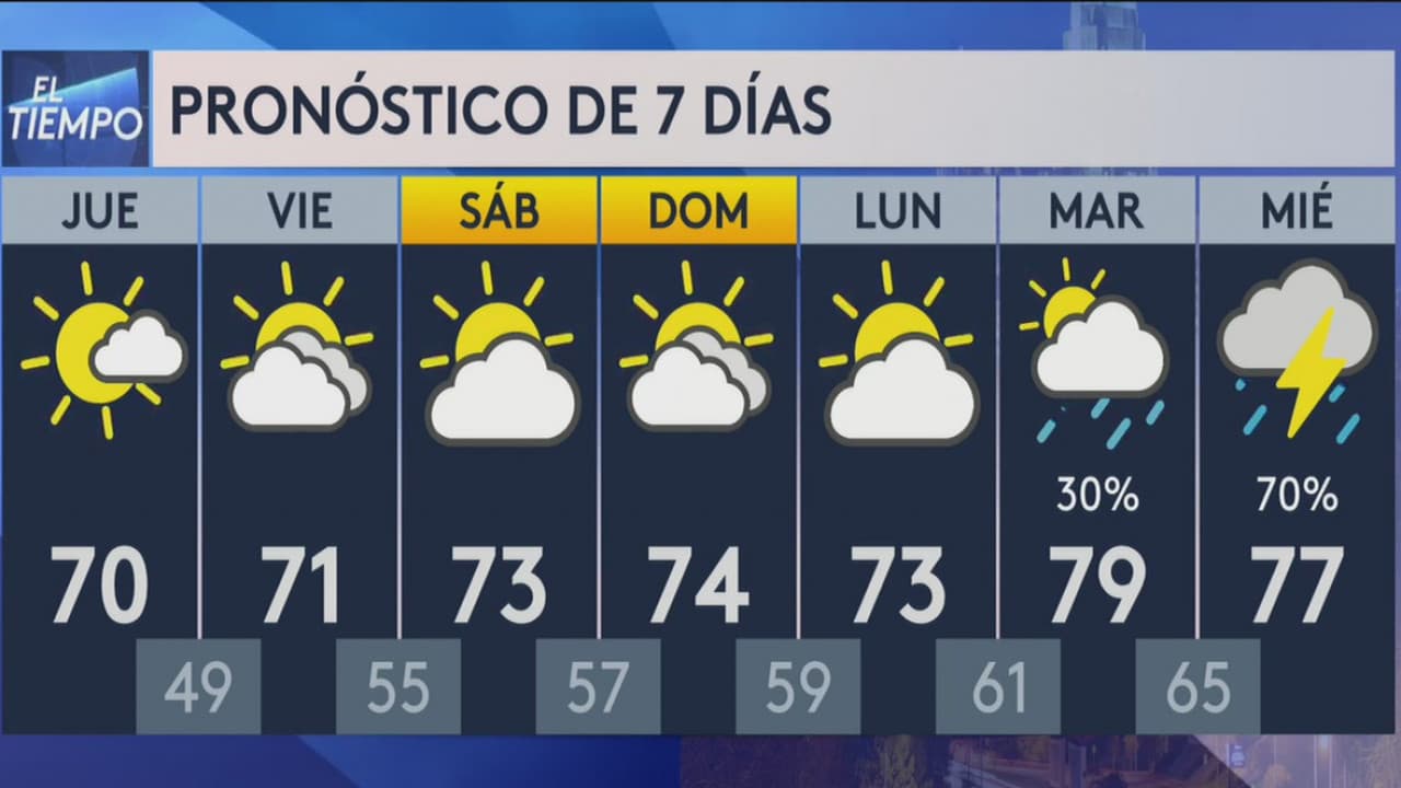 Las temperaturas descenderán hasta los 45 grados la mañana del jueves, mientras que las condiciones más frescas regresarán al transcurrir la tarde. Las temperaturas máximas estarán en los 70 grados.
