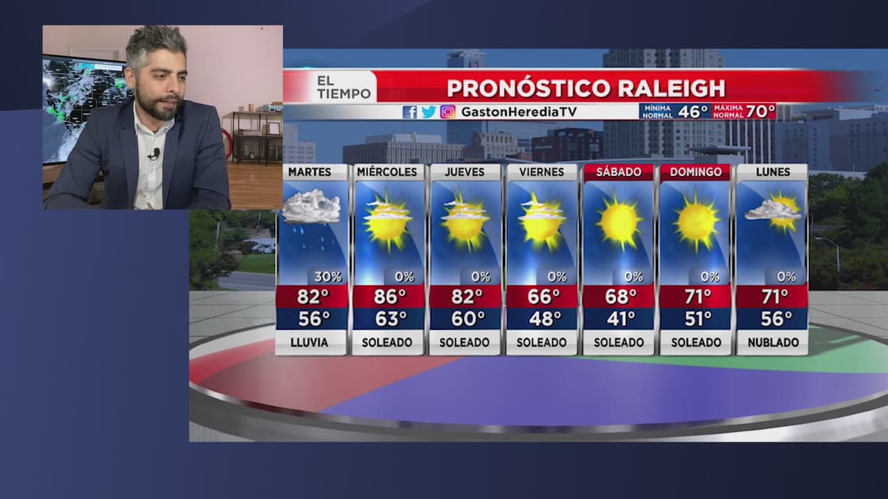 El paso de un sistema frontal traerá precipitaciones a Carolina del Norte. Se espera que las temperaturas estén alrededor de los 82 grados.