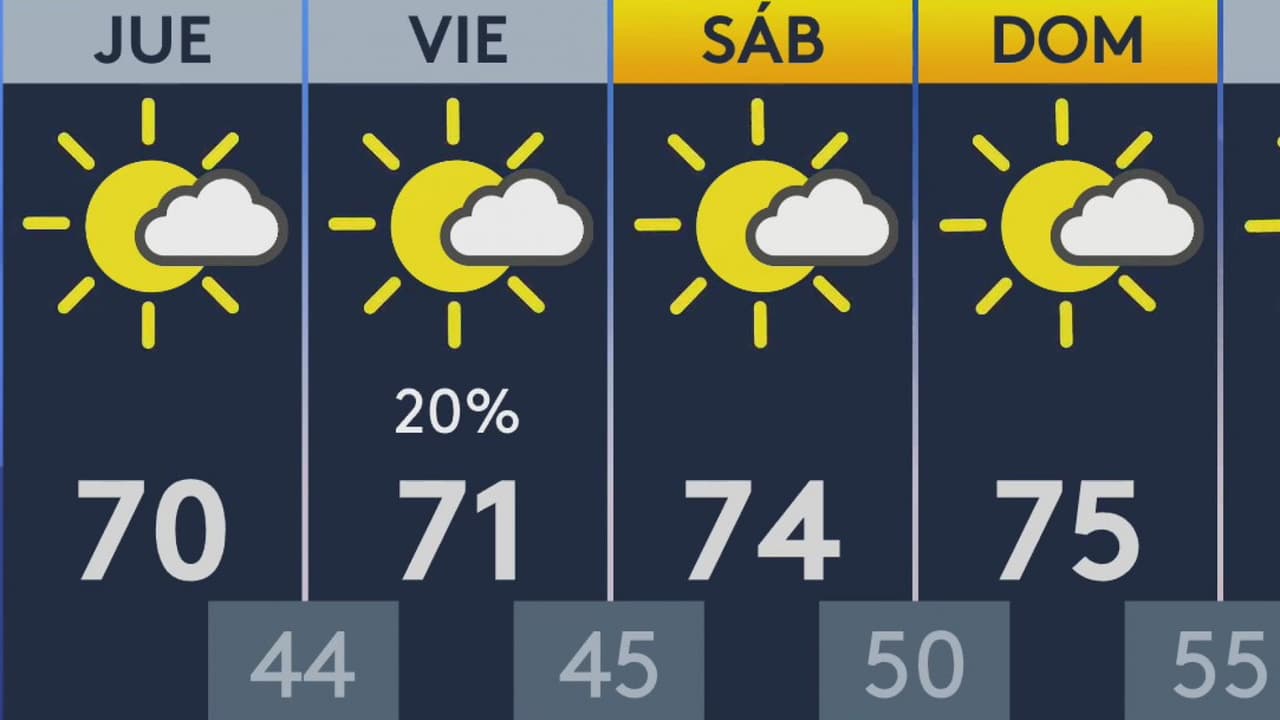 Las temperaturas máximas estarán en los 70 grados, con condiciones de nublados ligeros predominantes.