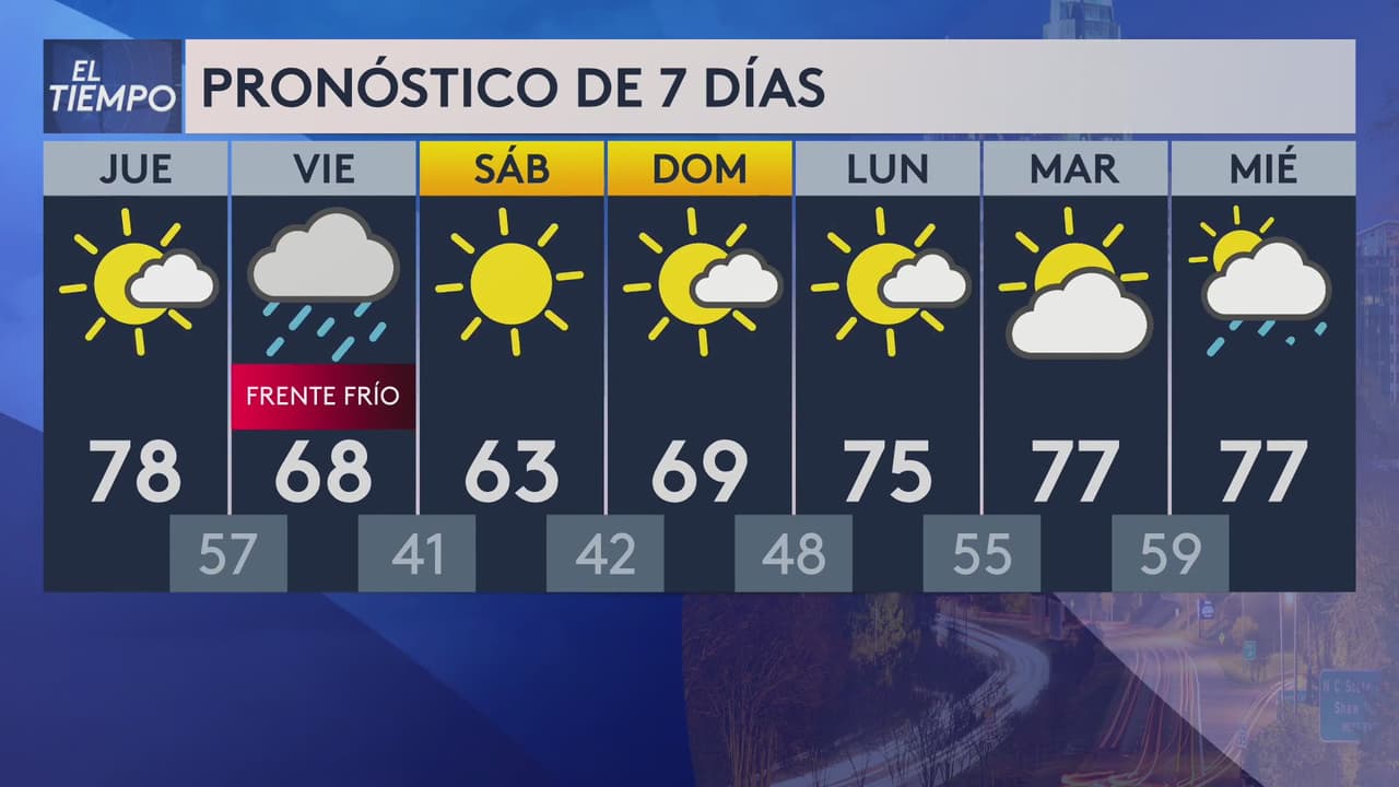 Prepárese para un día mayormente soleado y seco con temperaturas máximas de 78°F, pero se prevé que para el viernes ingrese un frente frío que traerá un descenso en el termómetro y posibilidad de lluvias.