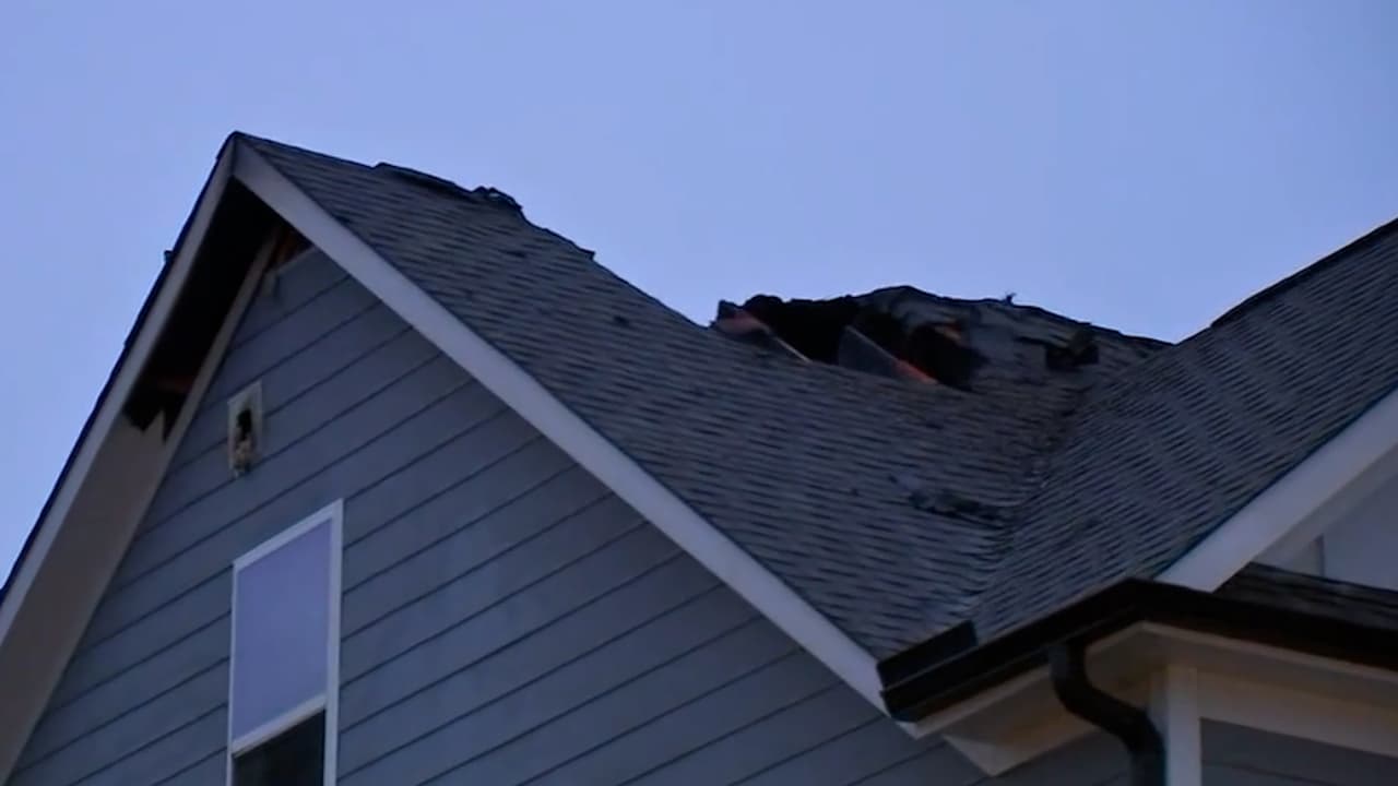El rayo impactó el techo de la casa la madrugada de este jueves, provocando un incendio. Las tormentas dejaron fuertes lluvias y relámpagos a su paso por Carolina del Norte.