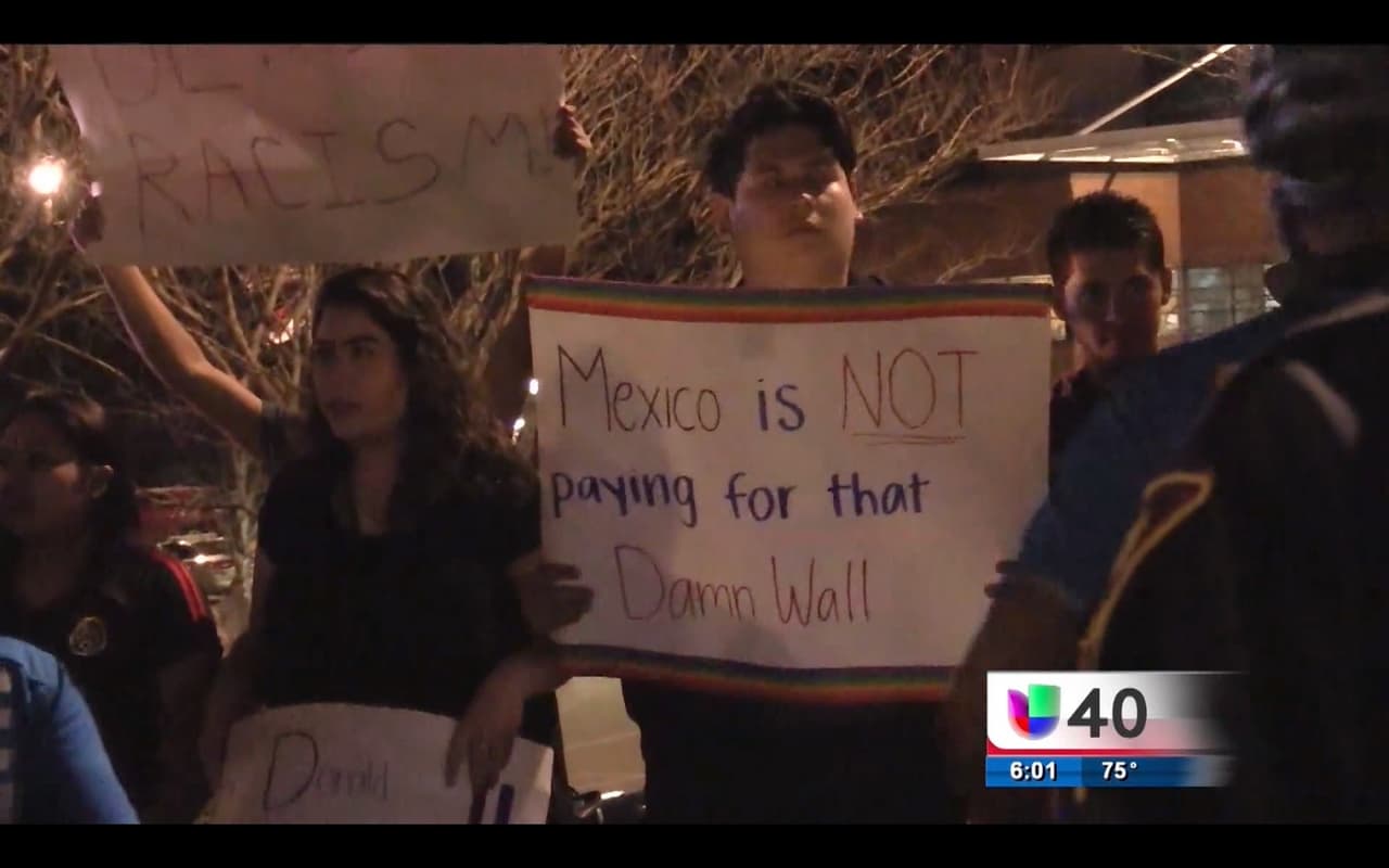 Activistas hispanos y afroamericanos se manifestaron fuera del lugar donde se presentó Donald Trump en su visita a Fayetteville.