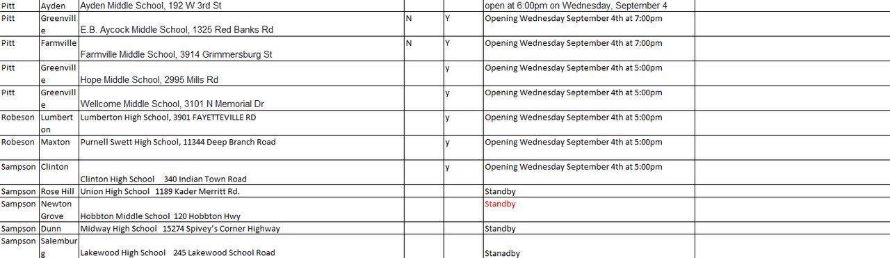 La mayoría de los refugios están ya disponibles como el de Durham localizado en la antigua tienda de Sears en el Mall Northgate, otros están por abrirse y las autoridades anticiparon que están listas para aperturar nuevos refugios si es que se requieren.