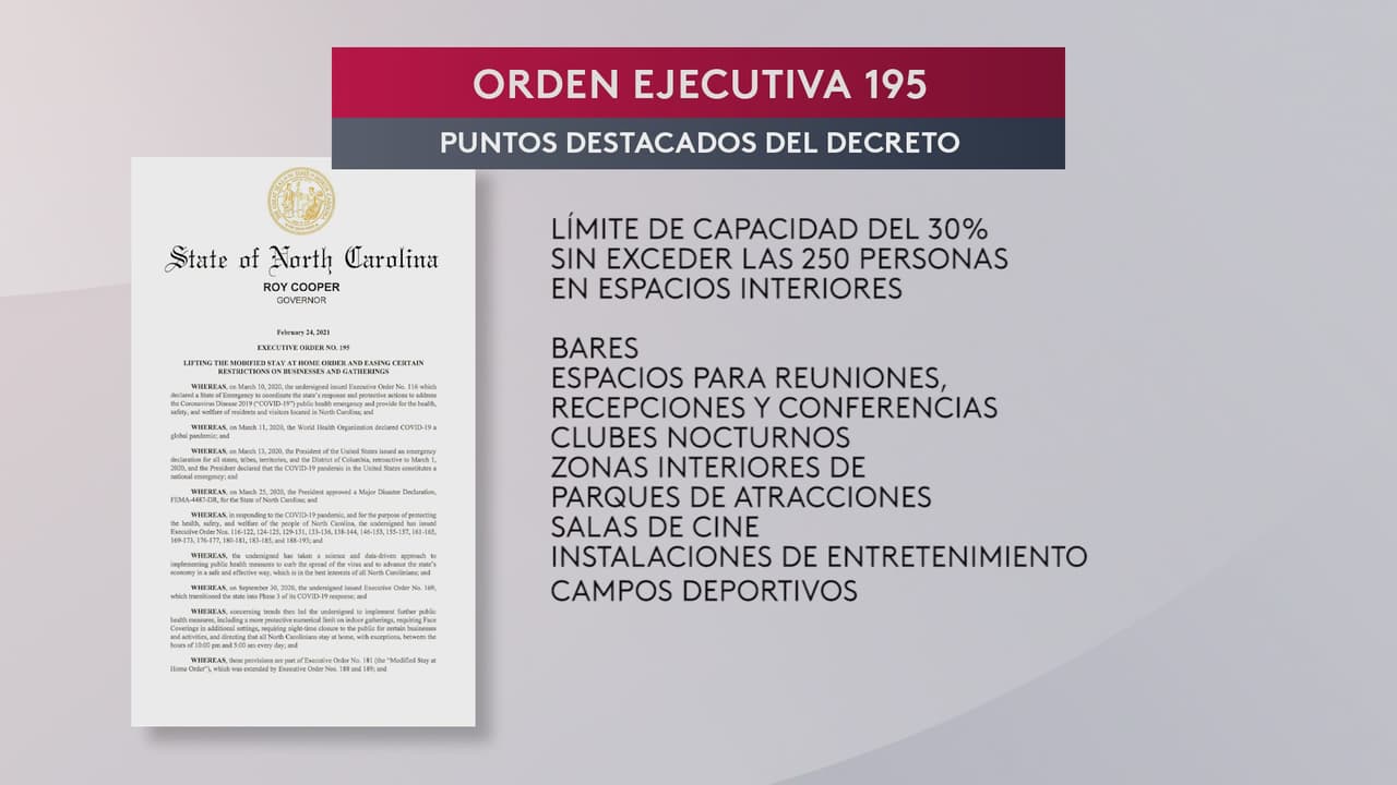 El proceso de reapertura económica inicia el 26 de febrero en Carolina del Norte, luego de que el gobernador Roy Cooper terminara el toque de queda y la orden de quedarse en casa. Te decimos los cambios de la orden ejecutiva 195.