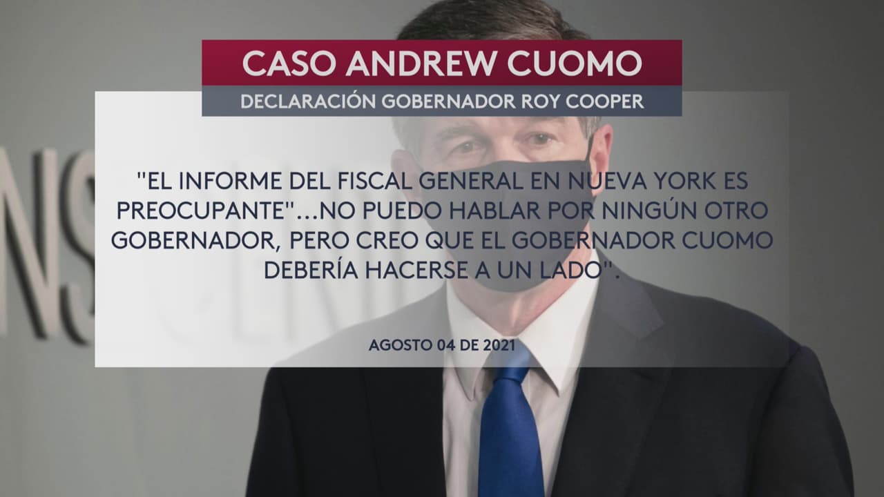 El gobernador de Carolina del Norte, Roy Cooper, dijo que las denuncias de acoso sexual contra el gobernador de Nueva York, Andrew Cuomo, son preocupantes.