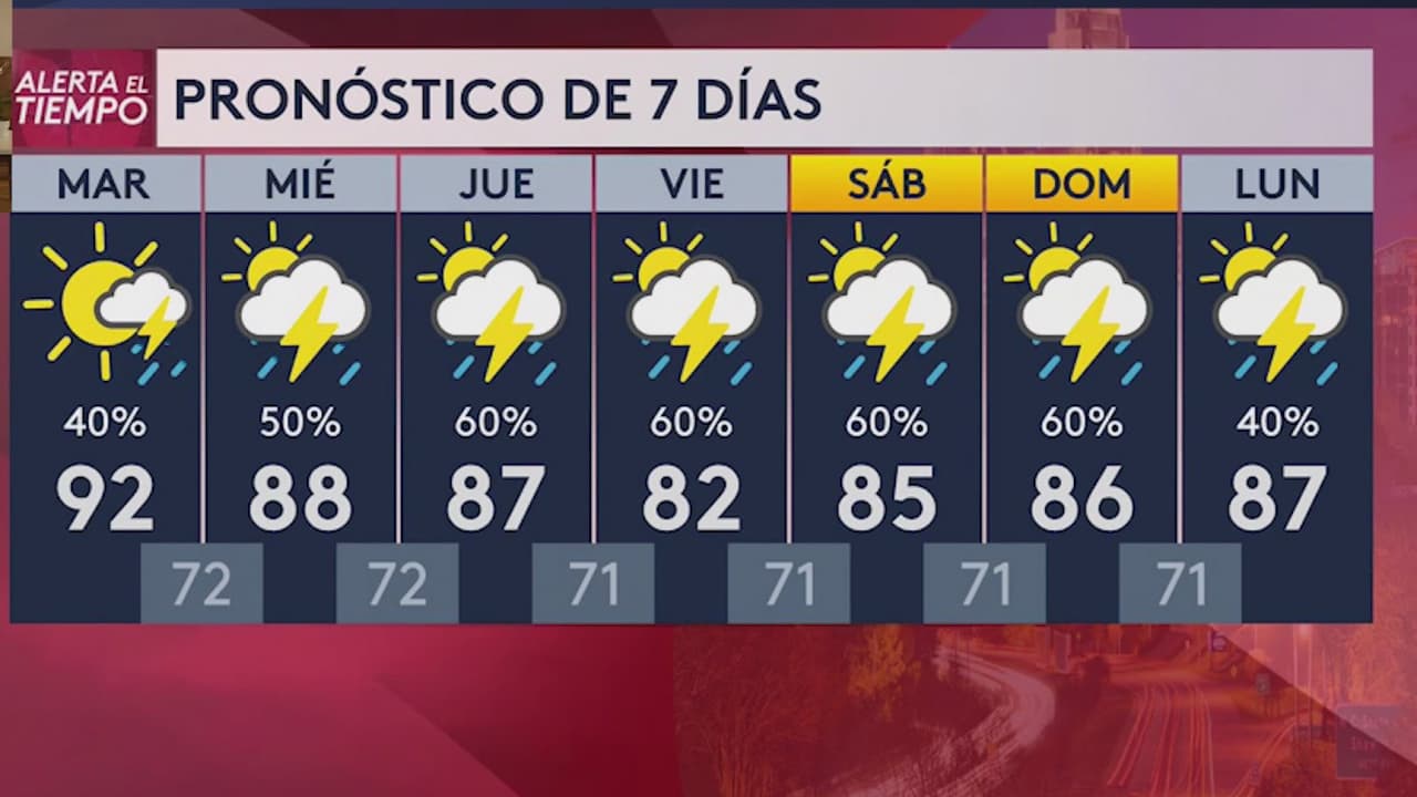 La mañana del martes iniciará parcialmente soleada; sin embargo, el calor volverá con temperaturas por encima de los 92 grados. Las tormentas podrían recorrer el estado en el transcurso de la tarde.