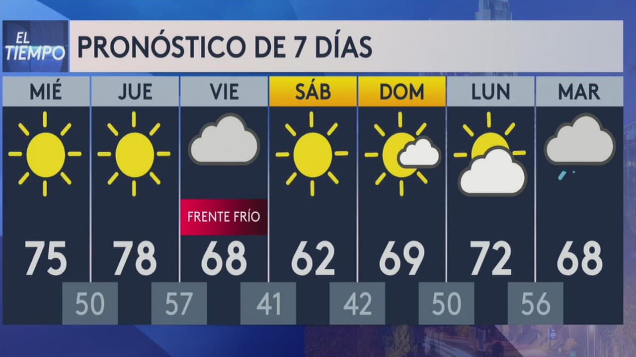 Las temperaturas descenderán hasta los 52 grados la mañana del miércoles. Se espera un pronóstico soleado con temperaturas hasta los 75 grados.