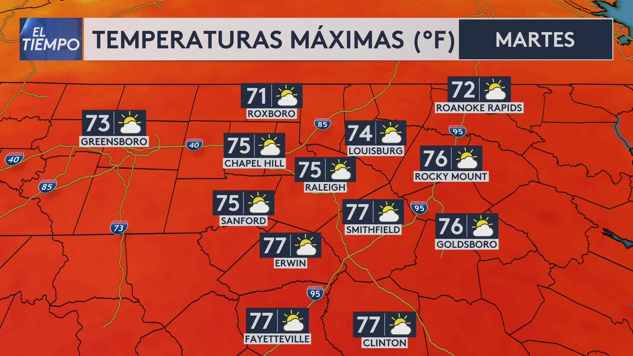 La visibilidad podría verse reducida el martes en Carolina del Norte debido a la neblina. Pronostican una tarde con temperaturas máximas en los 75 grados.