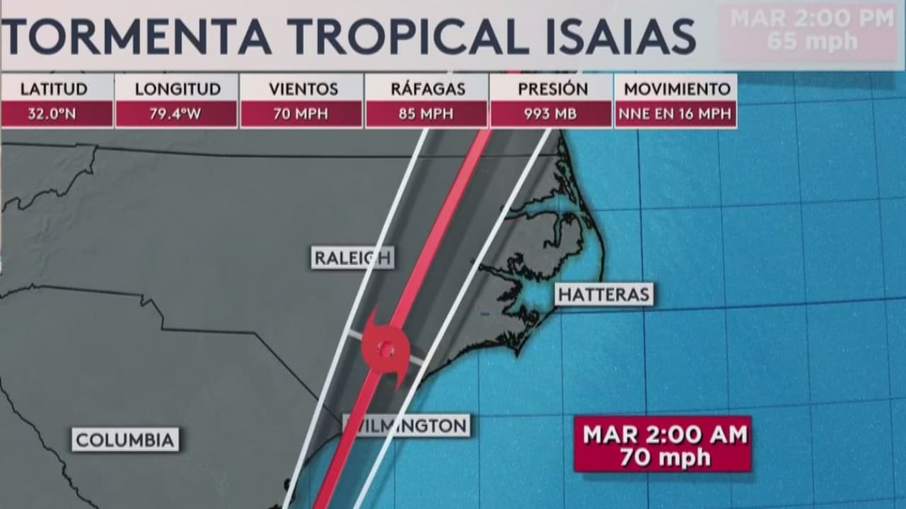 La tormenta tropical podría llegar al territorio de Carolina del Norte en la noche del lunes o las primeras horas del martes y traerá condiciones climáticas muy severas, por lo que se deben tomar precauciones.