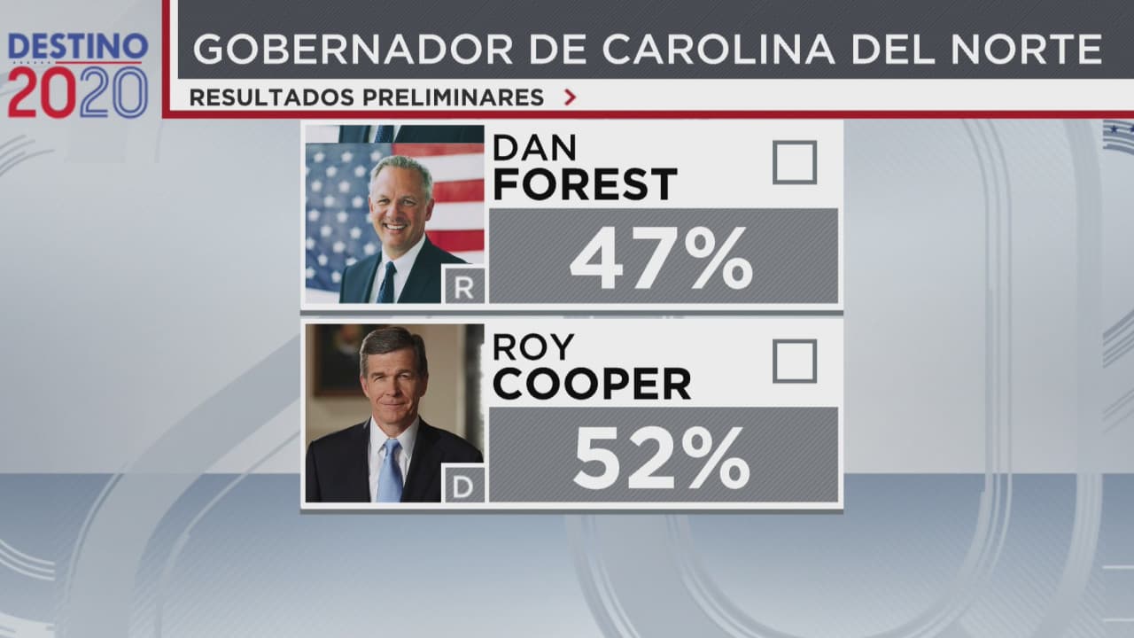 En la contienda al Senado el republicano Thom Thillis se mantiene arriba por una ligera ventaja contra el demócrata Cal Cunningham y en la carrera por la gobernación el demócrata Roy Coper va a la delantera contra su oponente el republicano Dan Forest.