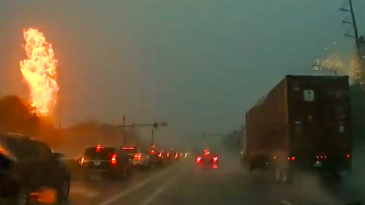 La cámara del tablero de una patrulla policial captó el momento en que un rayo impactó un transformador y causó una explosión cerca del cruce de la autopista 17 con Shelmore Blvd, en Mount Pleasant, Carolina del Sur. El incidente ocurrió el lunes 11 de agosto alrededor de las 11 am y generó caos vial y cortes de luz que duraron varias horas.