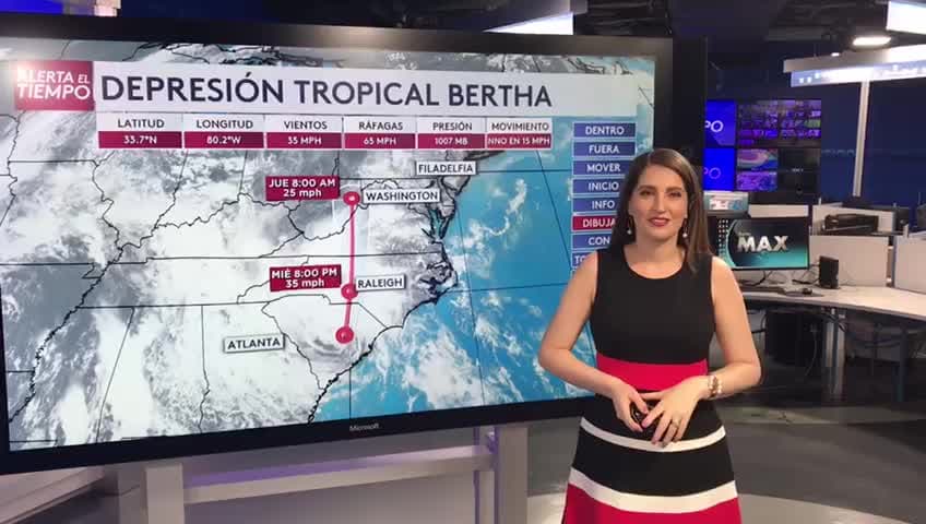 La tormenta tropical Bertha tocó tierra al este de Charleston, Carolina del Sur, alrededor de las 10:45 a.m. del miércoles. Según el Centro Nacional de Huracanes, Bertha podría producir una acumulación total de lluvia de 2 a 4 pulgadas, mientras que el este y centro de Carolina del Sur podrían registrar 8 pulgadas de lluvia acumulada. Localidades al sureste de Carolina del Norte y Virginia también podrían verse afectadas por las posibles inundaciones.