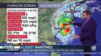 Albert Martínez, explica los últimos avances de la trayectoria del huracán Dorian, categoría 2.