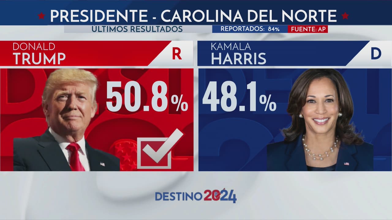 Trump se impuso en Carolina del Norte, un estado clave, dando duro golpe a Kamala Harris
