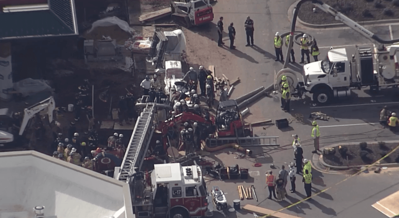 Varios trabajadores de la construcción resultaron atrapados luego que una zanja colapsara cerca del centro comercial Brier Creek, en Raleigh.