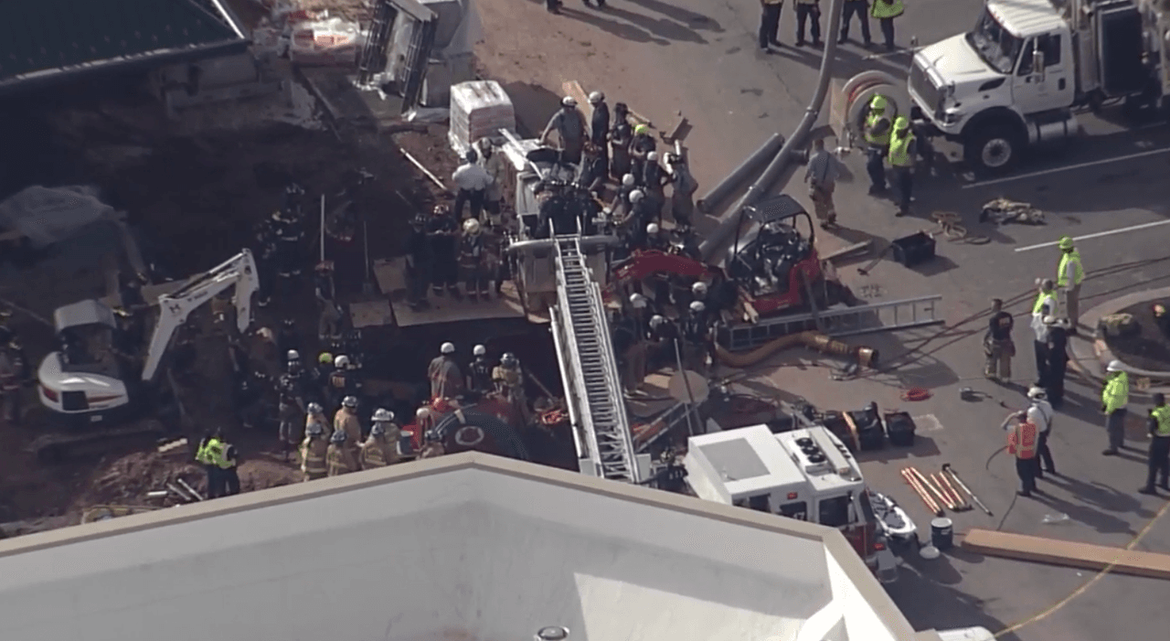 Según los informes de los rescatistas, varias personas quedaron atrapadas luego de derrumbarse una zanja entre TW Alexander y Glenwood Avenue.