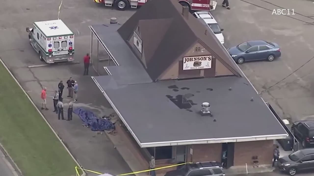 El vehículo chocó contra el restaurante Johnson's Drive-In, cerca de la autopista 64 en East Raleigh Street. El auto golpeó a cuatro personas que esperaban su comida en el estacionamiento.