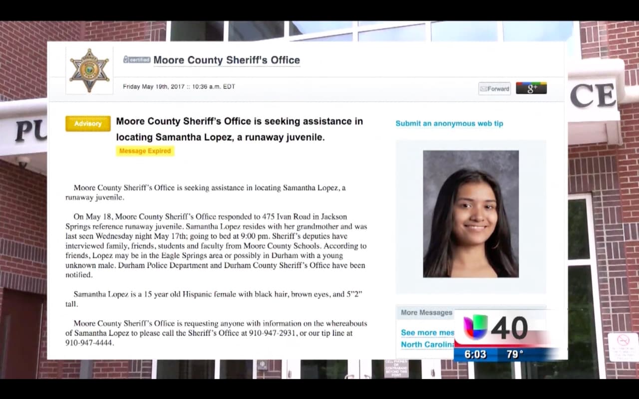 Samantha López lleva 5 días desaparecida luego de abandonar su casa en Jackson Springs. Ahora su familia teme por su bienestar.