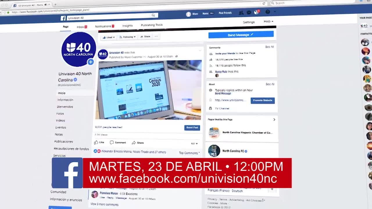 Por miedo a revelar su información personal y ser identificados por el gobierno, muchos inmigrantes indocumentados están temerosos de participar en el próximo Censo, ¿pero sabía que no hacerlo, afectaría la asignación de recursos para sus hijos y para todos los habitantes de Carolina del Norte incluído usted?...Muy sencillo, si las autoridades piensan que somos menos, nos otorgan menos...hagámonos contar y acabemos con nuestras dudas este 23 de abril a las 12 del día a través de un FB live con Juliana Cabrales Directora Regional de NALEO y Maru Quintero de Conexión Fin de Semana. #Univision40siemprecontigo, #Censo2020