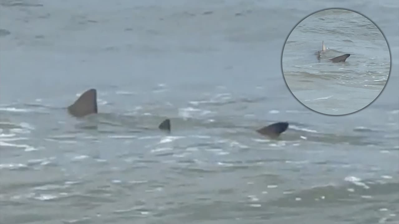 Video capta a tiburones nadando muy cerca de la orilla en playa de Carolina del Sur