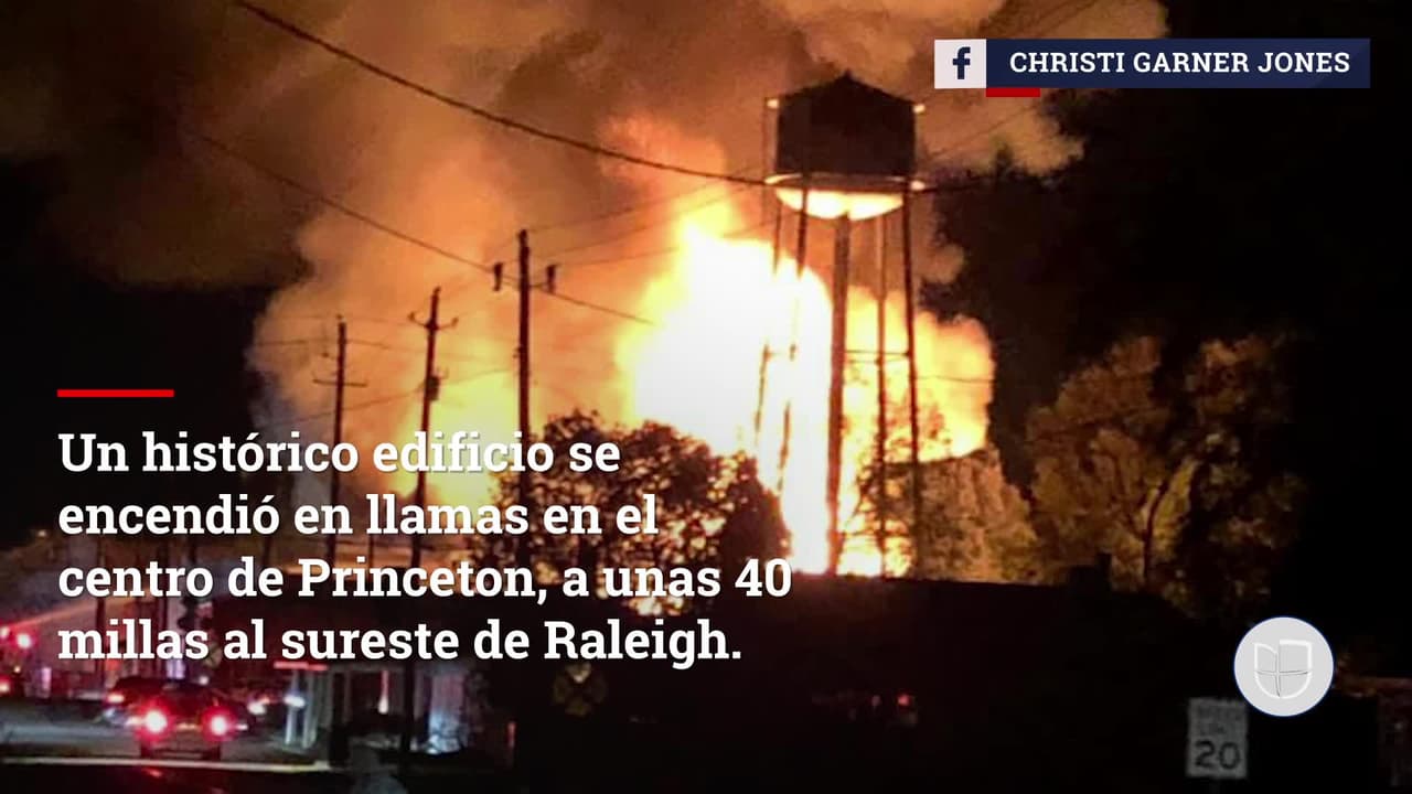 PRINCETON, Carolina del Norte.- Un histórico edificio se encendió en llamas en el centro de Princeton, a unas 40 millas al sureste de Raleigh. Más de 15 bomberos llegaron la noche del miércoles para evitar que el fuego se propagara.
