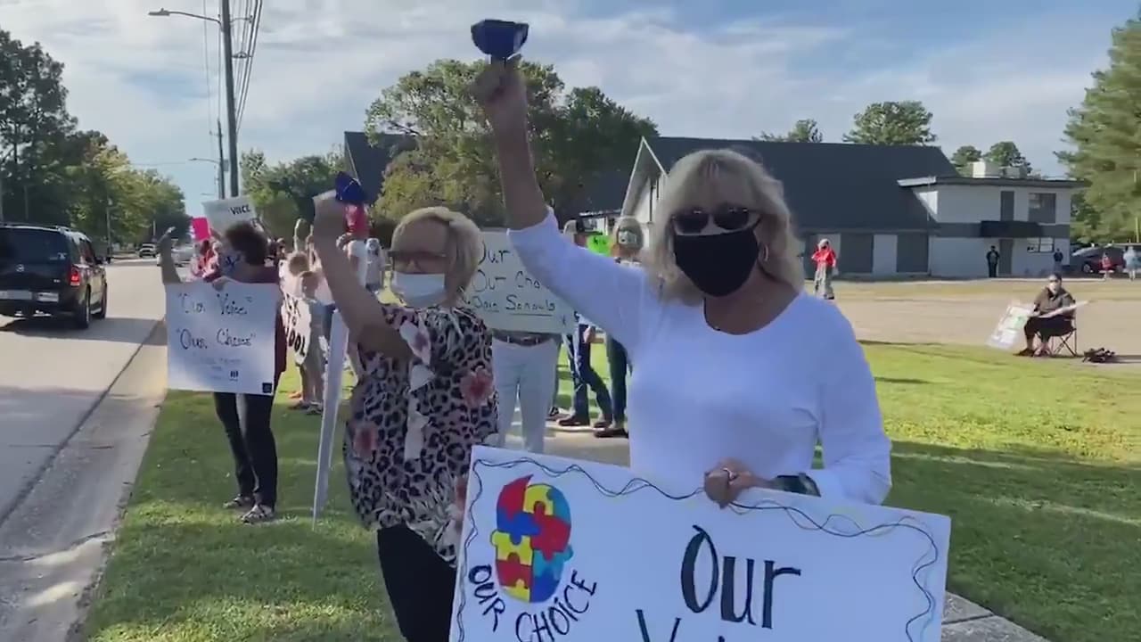 "Votamos para que reabran las escuelas": padres y estudiantes protestan a favor de las clases presenciales en Fayetteville