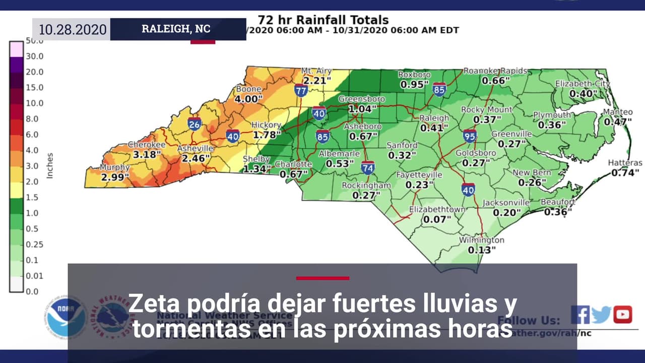 Zeta podría dejar fuertes lluvias y tormentas en las próximas horas en Carolina del Norte