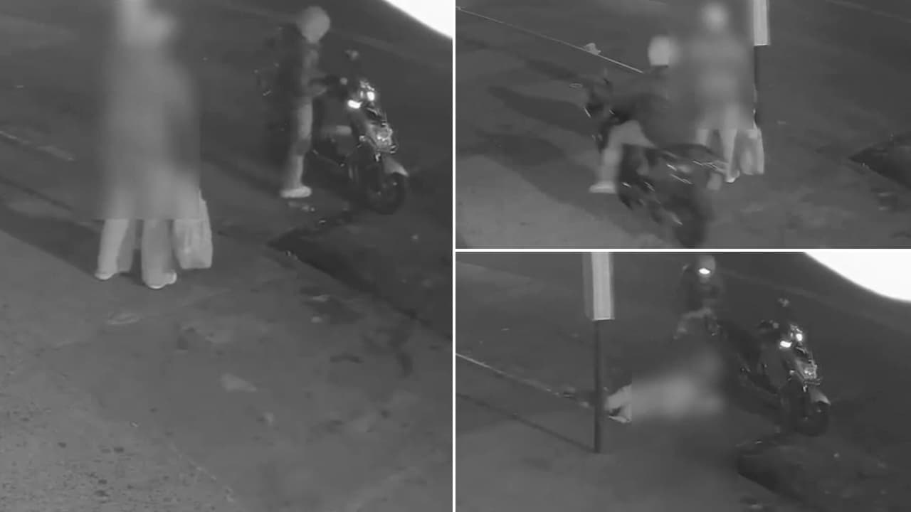 Mientras que la víctima seguía luchando por levantarse del suelo, el hombre se bajó de la moto.