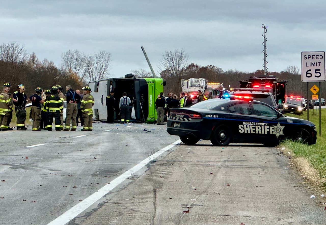 CHILI, NY.- Un autobús turístico se volcó en la carretera interestatal 490 en dirección oeste cerca de Chili, Nueva York, el jueves por la mañana, dejando 28 personas heridas, una de ellas en estado crítico.