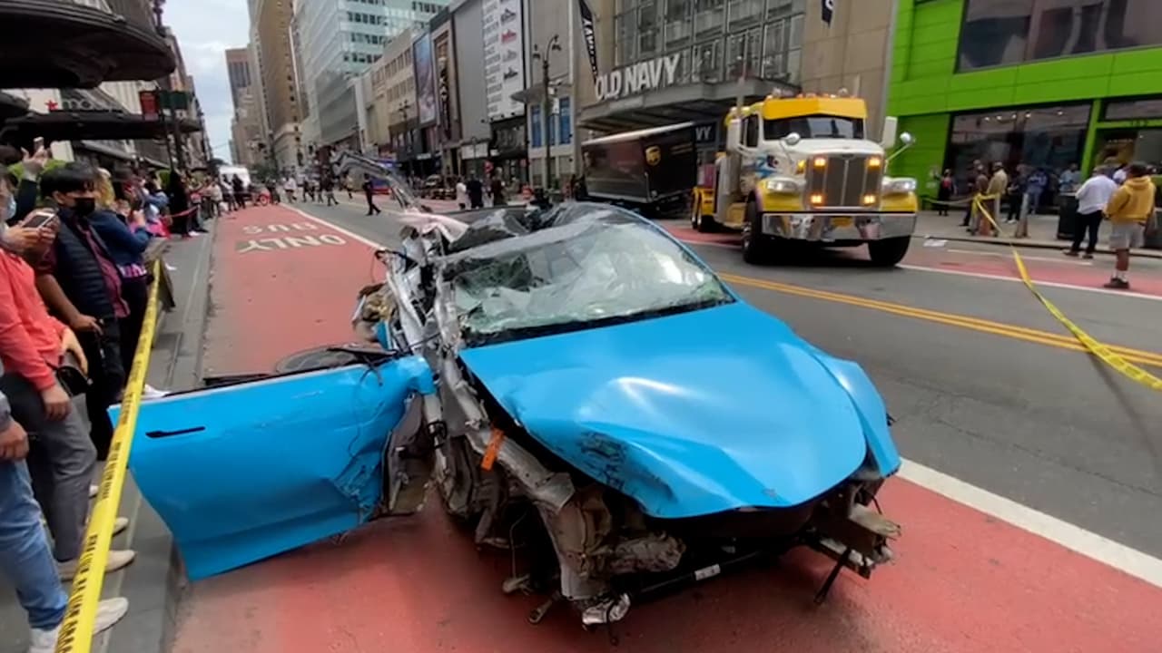 El aparatoso accidente, que dejó a un auto Tesla prácticamente sin techo y sin una puerta, interrumpió el tráfico de la zona por varias horas en el corazón de Manhattan.