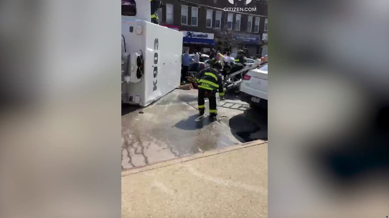 Un video de Citizen App muestra el vehículo volcado sobre su costado cerca de la Avenida N y la Avenida Schenectady en la sección de Flatlands el domingo.