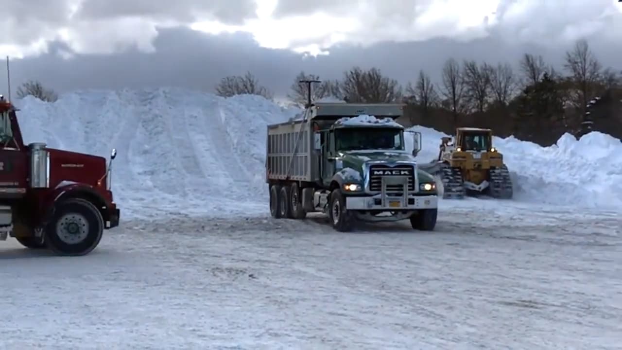 Apilan montañas de nieve en estacionamientos del condado Erie, en Nueva York