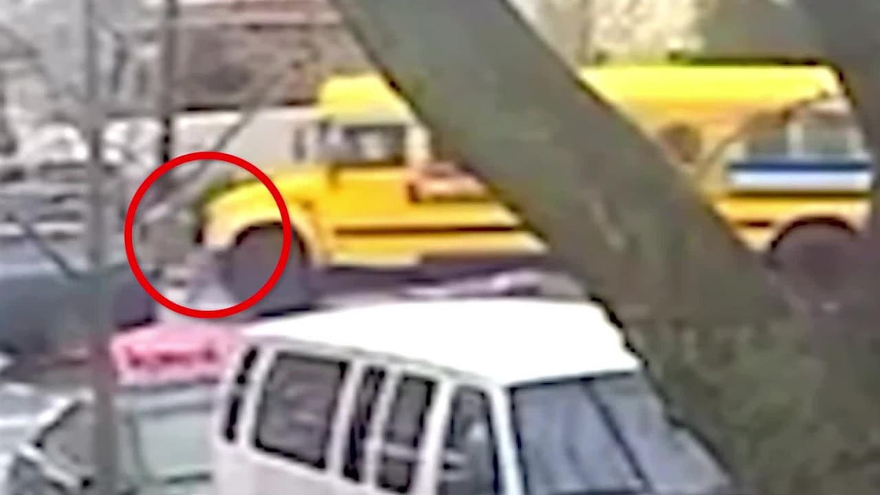 Un video de vigilancia obtenido por el Daily News muestra el momento en que el conductor de un largo autobús escolar amarillo, atropella a la jovencita, cuando da vuelta desde Avenue P hacia Bedford Ave. en Midwood.