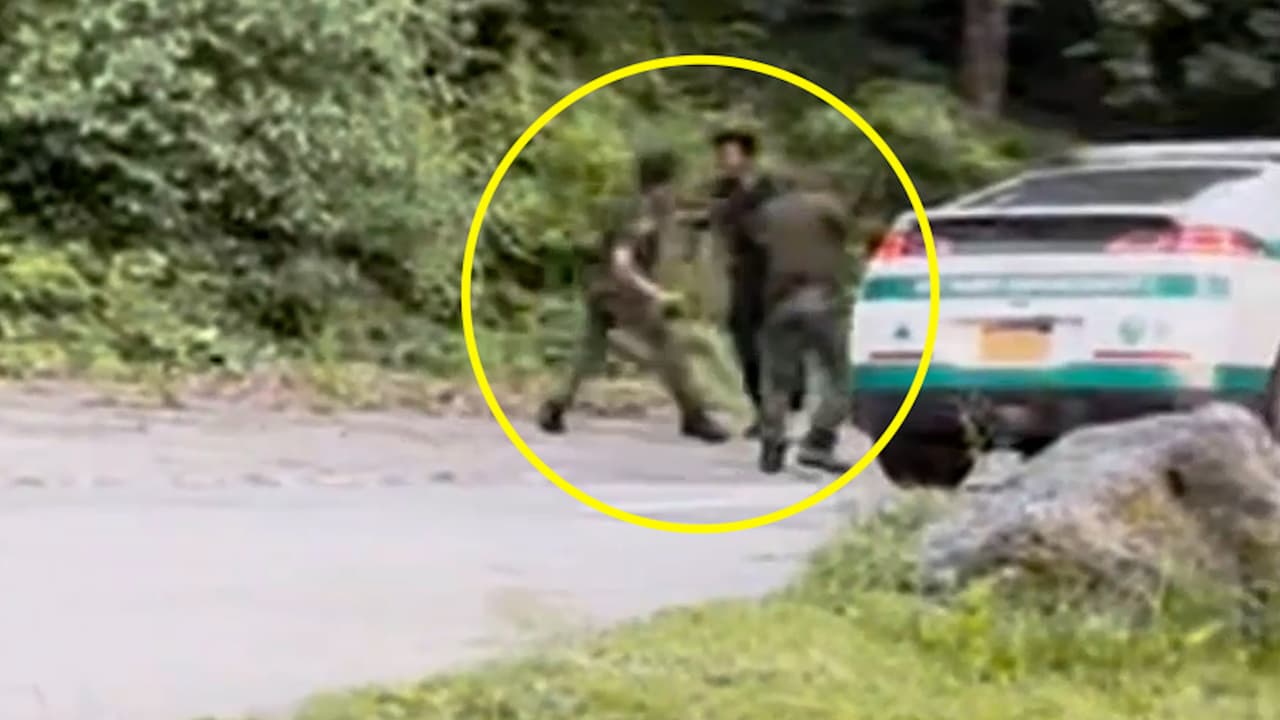 Además, se puede ver cuando otros dos trabajadores de los parques se acercaron al hombre con las batutas en alto intentando ahuyentar al sospechoso.
