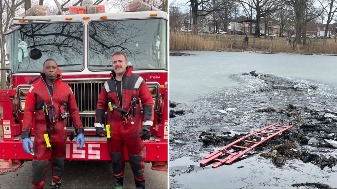 Así fue el dramático rescate de dos menores que cayeron a un estanque congelado en Queens